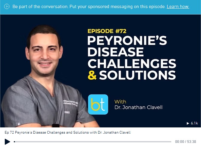 Dr. Jonathan Clavell is a board-certified urologist practicing in Houston, Texas. He is fellowship-trained in sexual medicine and an Assistant Professor in Surgery for the University of Texas in Houston – Division of Urology. His areas of expertise include penile prostheticstreatment of erectile and orgasmic dysfunctions, complex Peyronie’s disease, penile rehabilitation after prostate cancer surgery, and the treatment of urinary symptoms for prostate enlargement.